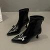 Fashion Winter New Thin Heel Cotton Boots Women's Pointed Metal Buckle Back Zipper Anti-slip Wear-resistant Short Boots