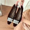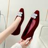 Fashion 2025 Fall Winter Women Slip-On Shoes Square Toe Rhinestone Suede Burgundy Low Heel Single Shoes New Arrival