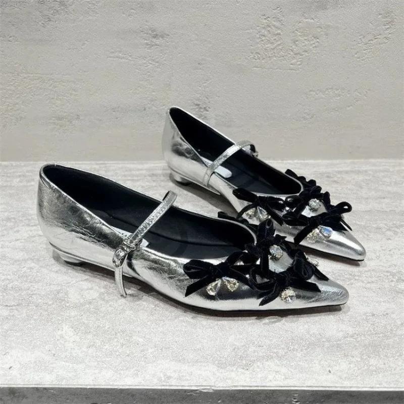 Fashion Ladies Shoes 2025 Hot Sale Shallow Women's Flats Fashion Rhinestone Daily New Butterfly-knot Light Pointed Toe Flat Low Heels