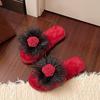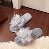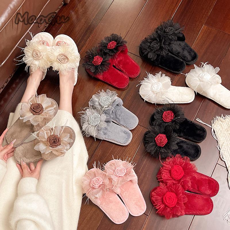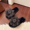 Fashion Fairy Style Plush Shoes Women's 2025 Autumn Winter Fashion Flower Warm Slippers Comfortable Short Plush Bridal Slides Pantuflas