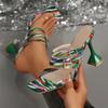 Fashion Summer Women High Heels Sandals New Mix Color Graffiti Sandals Comfortable Squared Toe Transparent Fashion Shoes Slides Women