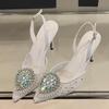 Fashion Sexy Pointed Toe Crystal Women Pumps Street Style Thin High Heels Buckle Strap Sandals Elegant Party Stripper Mule Shoes Zapatos