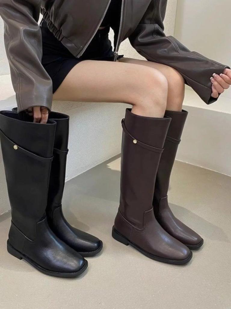 Fashion 2024 New Square Head Chunky Heel Hose Knight Boots Women Korean Sle Retro All-Match Boots\n below the Knee Slimming Fashion...