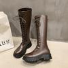 Fashion Women High Boots Flats Platform Leather Shoes Knee High Knight's Boots Fashion New Elegant 2025 Winter Lace Up Shoes Mujer Botas