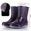 Fashion Rain Boots Women Waterproof Kitchen Car Wash Work Non-slip Mid-Calf Water Boots Antiskid Wear-Resistant Thickened Women Shoes