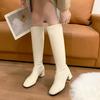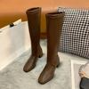 Móda 2024Móda Ženy Černé Blokové Vysoké Podpatky Dlouhé Kozačky Nové Zimní Teplé Kozačky po Koleno Měkká Kůže Kozačky Nad Koleno Boty