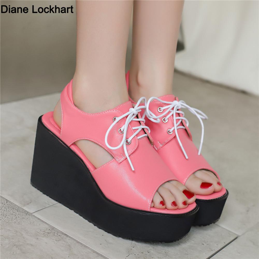 Fashion Women Wedges Sandals Summer Thick Bottom Waterproof Platform Dress Banquet Comfortable Open Toed Workwear Large Size 32-48 Pink