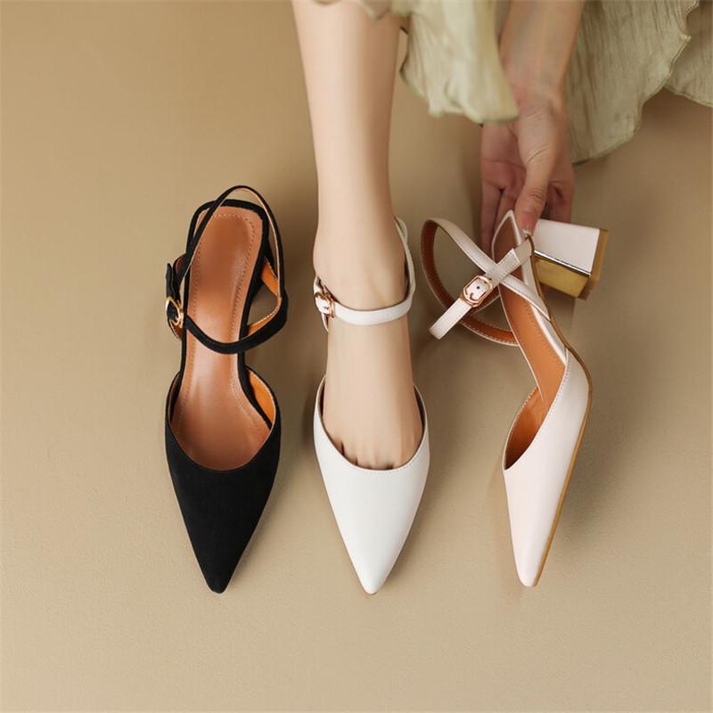 Fashion New Summer Sandals Sheep Suede Women Sandals Pointed Toe Back Strap Chunky Heel Shoes for Women Casual Shoes Zapatos De Mujer