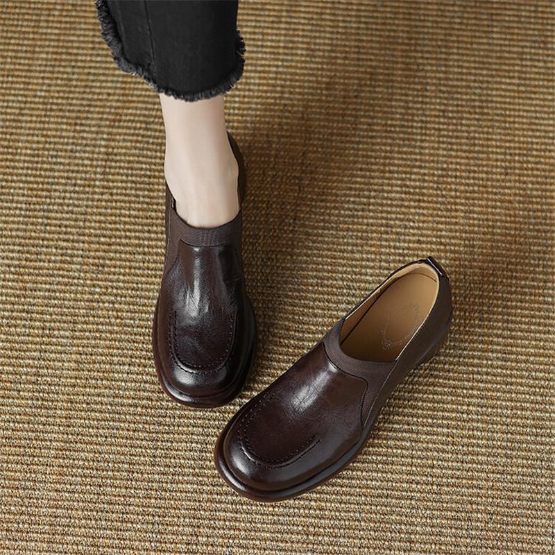 Fashion New Autumn Genuine Leather Women Pumps Fashion Round Toe Shoes for Women Chunky Heel Loafers Zapatos De Mujer Women Shoes Brown