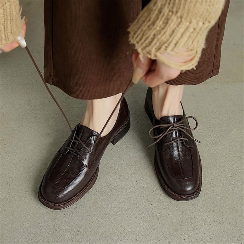 Fashion New Spring/autumn Genuine Leather Women Shoes Round Toe Shoes for Women Fashion Versatile Lace Loafers Low Heel Women Pumps
