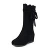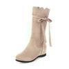 Fashion Women Winter New Versatile Boots Mid Calf Low Heeled Zip Boots Chunky Heel Bow Boots Sweet Girls Botas Mujer Black Apricot