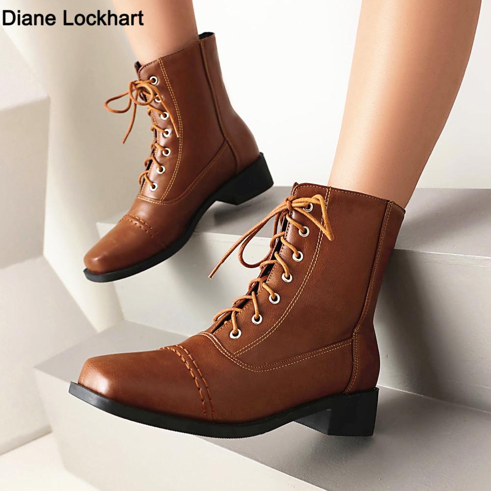 Módní všestranné dámské kotníkové boty podzim/zima britský styl PU kůže krátké boty šněrovací pro dojíždění plochá podrážka motorkářské boty
