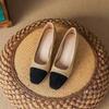 Temperament color matching high heels women's autumn new light mouth soft leather medium heel thick heel single shoes