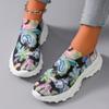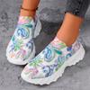 Módní vícebarevné tenisky s květinovým potiskem Dámské módní síťované sportovní boty s kamínky Silná platforma Ležérní a pohodlná dámská obuv