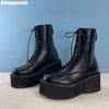 Móda 2025 Nejnovější Klínky Platforma Chelsea Boty Kulatá Špička Šněrovací Kotníkové Boty Zadní Zip Černá/hnědá Smíšená Barva Gotické Krátké Boty