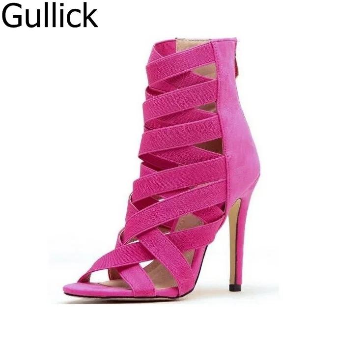 Fashion Elastic Cross Strap Open Toe Women Boots Stiletto Heel Back Zipper Gladiator Style Sandal Boots 2025 Summer Novelty Fashion Shoe