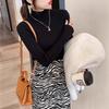 Women's Autumn Winter Thickened Striped Sweater with Integrated Fleece Fabric Half-High Neck Base Layer Top