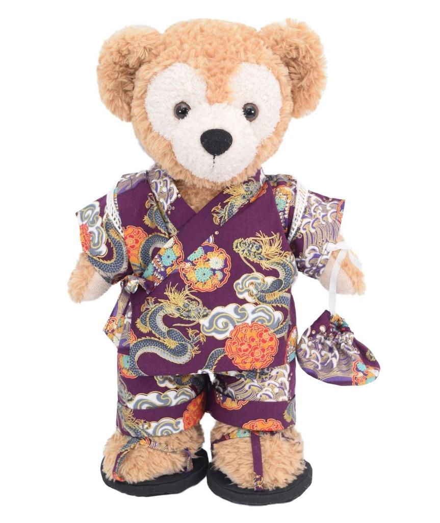 Teddy Bear Online Store Alice Duffy Yukata Costume with Drawstring Bag and Sandals, Jinbei with Rising Dragon Design, Size Small (Duffy 1)