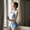 Sex underwear Min sexy belly pocket uniform retro pure desire skirt set mesh see-through sex pajamas