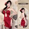Sexy underwear, antique peony embroidery flag neck robe, bright red bride lace-up hollow nightdress, uniform temptation
