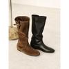 Cowhide version~ Skinny inner height-increasing boots Suede knight boots Women's round head but knee boots Folded western boots