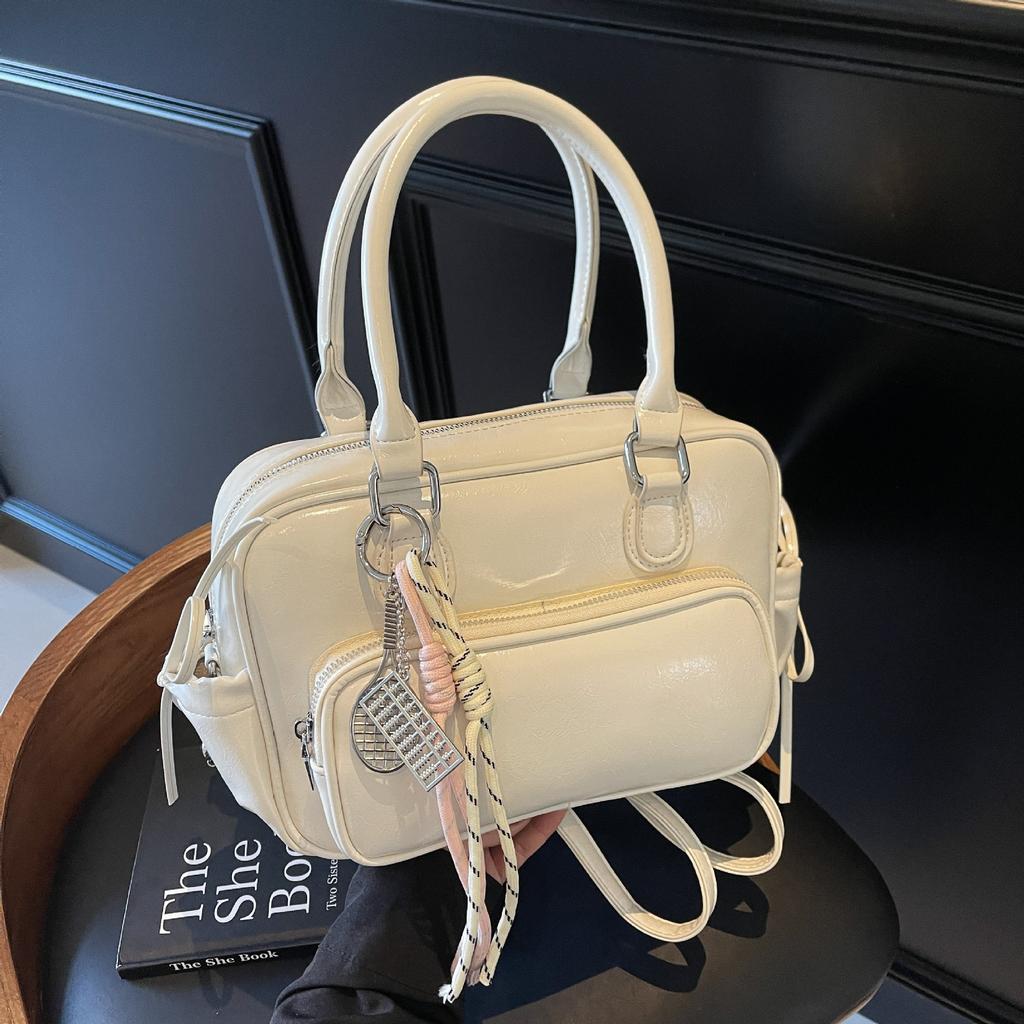 - **Vintage Barrel Details**: Features a glossy barrel silhouette with metal hardware, a top handle, and an optional decorative scarf & charm accessory, exuding retro chic. Multiple color options (with or without accessory) cater to diverse style preferences.