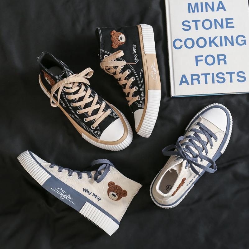 Spring new bear high-top canvas shoes female student casual shoes single shoes white shoes female