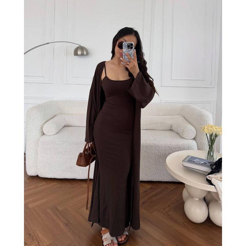Western Style New Fashion Casual Loose Sling Dress Long dress Cardigan Outerwear Two-Piece Dress Set