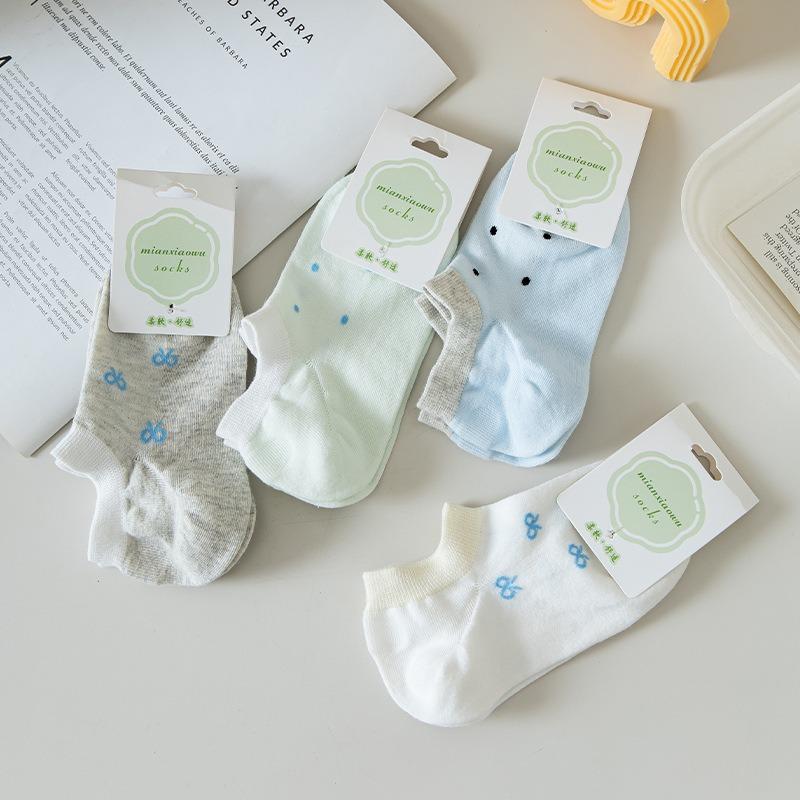 Bowknot Socks, Women's Polka Dot Short Socks, Women's Solid Color Summer Thin Breathable White Short Socks, Summer