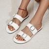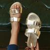 Button flat bottom one-word shoes women open-toed retro style beach sandals women