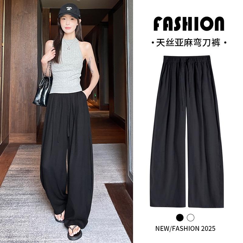 Black Tencel linen wide-leg pants women's summer thin high-waisted thin lazy loose cotton and linen casual scimitar pants