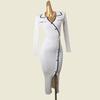 Fancy Classic Style Split Polo Collar Knitted Long-Sleeved Dress Female Autumn 2024 New Arrival Slim Looking Color Matching Wrapped Skirt