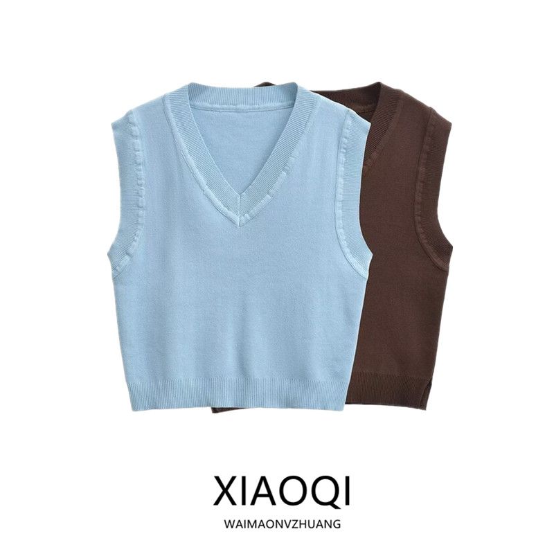 Fashion Style 2024 Autumn New Women's Clothing Casual Easiest for Match V Neck Sleeveless Plain Stitch Vest Jacket 5536112
