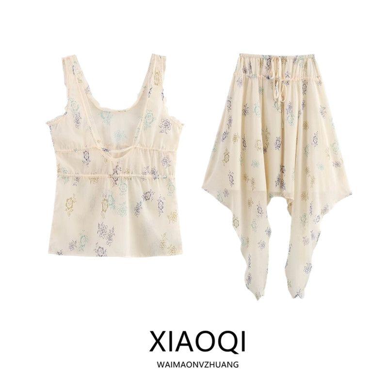 Fashion Style 2024 Autumn New Women's Clothing Bowknot Decoration Print Tops Mid Waist Skirt 9409032