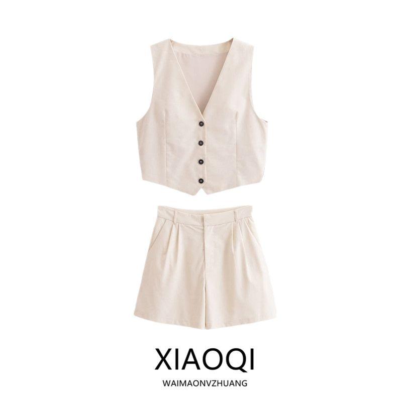 Fashion Style 2024 Summer New Women's Clothing Slit Design Sleeveless V-neck Vest High Waist Shorts 2010797