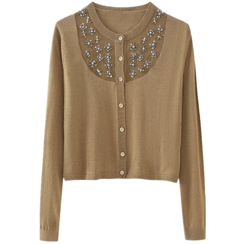 Fashion Style 2023 Fall and Winter New Arrival Female Easiest for Match Rhinestone round Neck Long Sleeve Knitted Coat 0431100 704