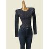 Foreign Trade Original Order Silver Silk Long Sleeves Bottoming Shirt Fashion Puff Sleeve Sexy Open Back Slim Fit Pullover Tops