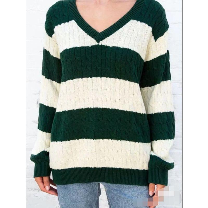 Liangli Fashion BM Style Brandy Same Style Stripes Cable-Knit Sweater V Neck Loose BM Knitwear Pullover