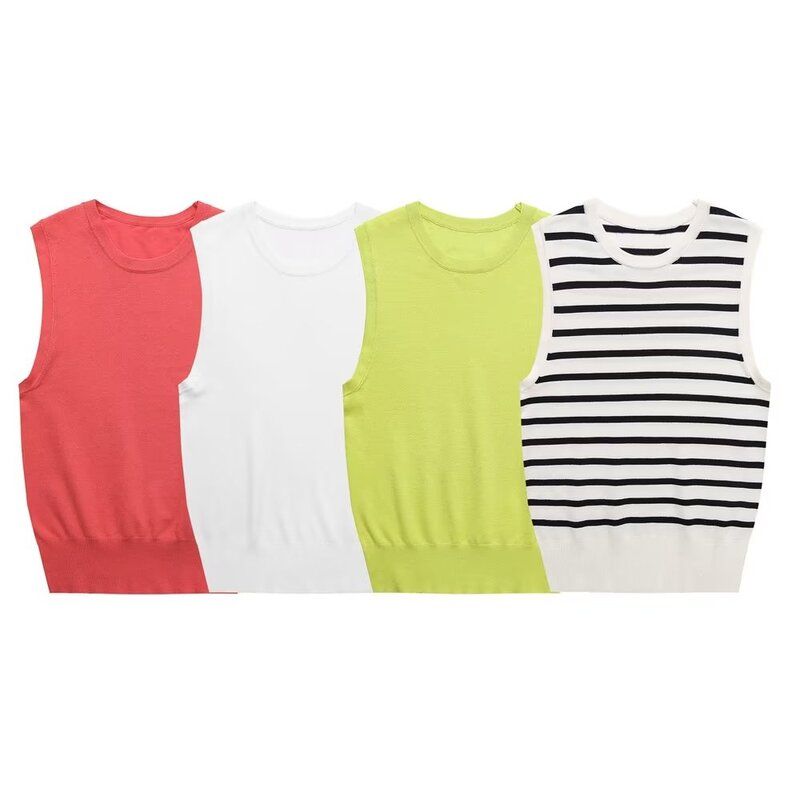 Fashion Style New Fashion Women's Fashion Clothing Basic round Neck Sleeveless Stripes Knitting Tops 8851018 105