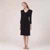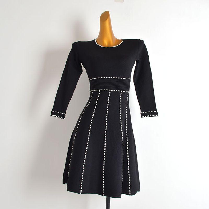 Retro Color-Block Crew Neck Knitting Dress Women's Clothing Spring and Summer Waist-Tight Slim Looking Mid Length Long Length Sheath A- line Skirt