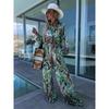 Summer and Autumn Beautiful Summer New Arrival Women's Clothing Fashion Style Lapel Long Sleeves Button Shirt Positioning Printed Pants Suit