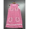 Bajia Small Stand Collar A- line Skirt Light Luxury Cherry Blossom Powder Sleeveless Base Knitted dress Foreign Trade Original Order Short dress