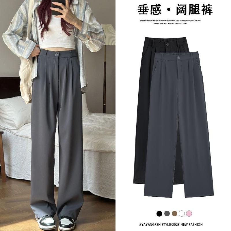Gray suit pants women's high-end drape spring and autumn new straight pants small narrow wide-leg pants