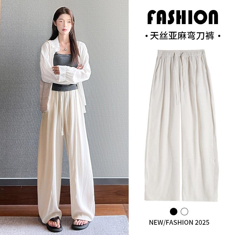 White cotton and linen wide-leg pants women's summer new linen Tencel high-waisted thin casual loose scimitar pants