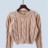 Spring Autumn Short Knitted Sweater Cable-Knit Pullover Puff Sleeves Stylish High Waist Bottoming Shirt Outwear Women