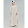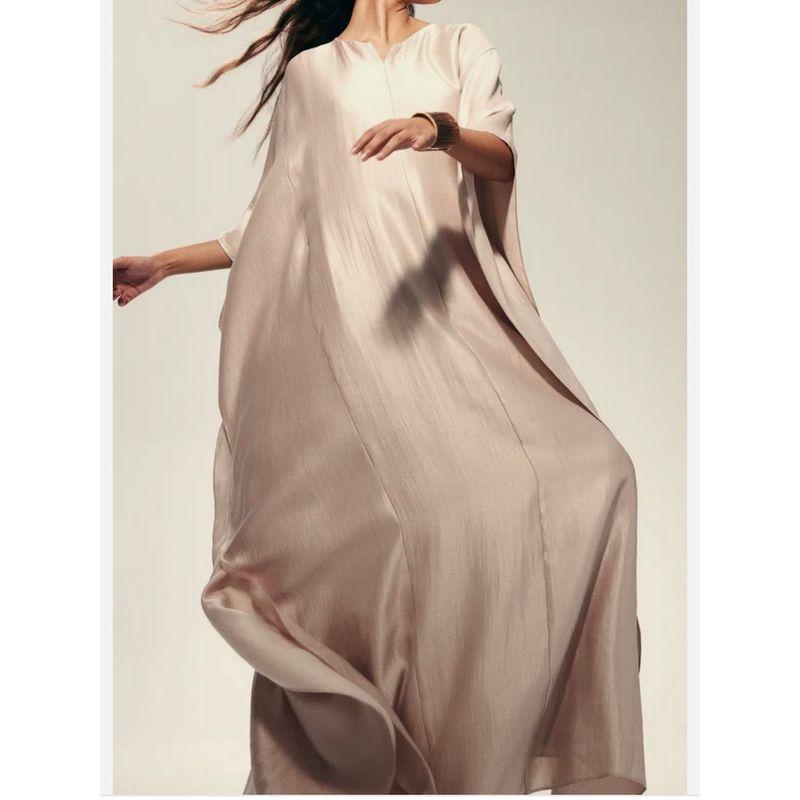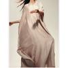 Foreign Trade H Home Small V-neck Heavy Industry Bright Silk High Quality Batwing Sleeve Slimming Loose Kraft Tan Dress Plus size