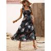 Export Single Lu Home Fashion Beach Style Tropical Rainforest Print Long Summer Elegant Open Back Tied Dress Female