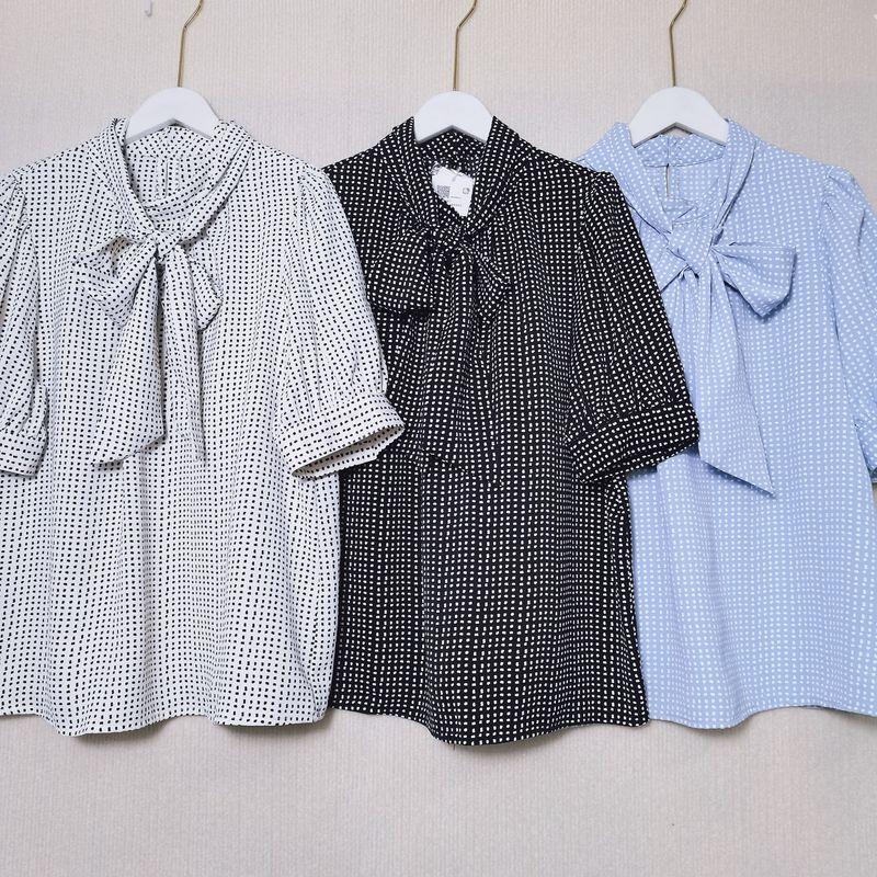Export Export Original Order Leftover Stock Polka Dot Short Sleeve Pullover Shirt Women's Ribbon Detachable Professional Commute Bottoming Shirt
