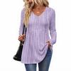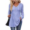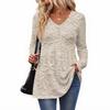 Dámský ležérní módní top s V-výstřihem, knoflíky a texturou, s dlouhým rukávem