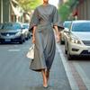 Foreign Trade Order H Home Slim fit Slimming Casual Long sleeve round Neck Smooth Fabric Fashion Elegant Lace up Big Hemline Dress